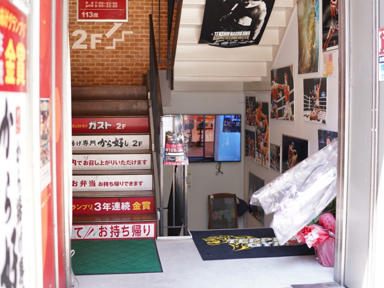 階段を登って3Fまで上がり、下駄箱に靴を入れて入館してください。